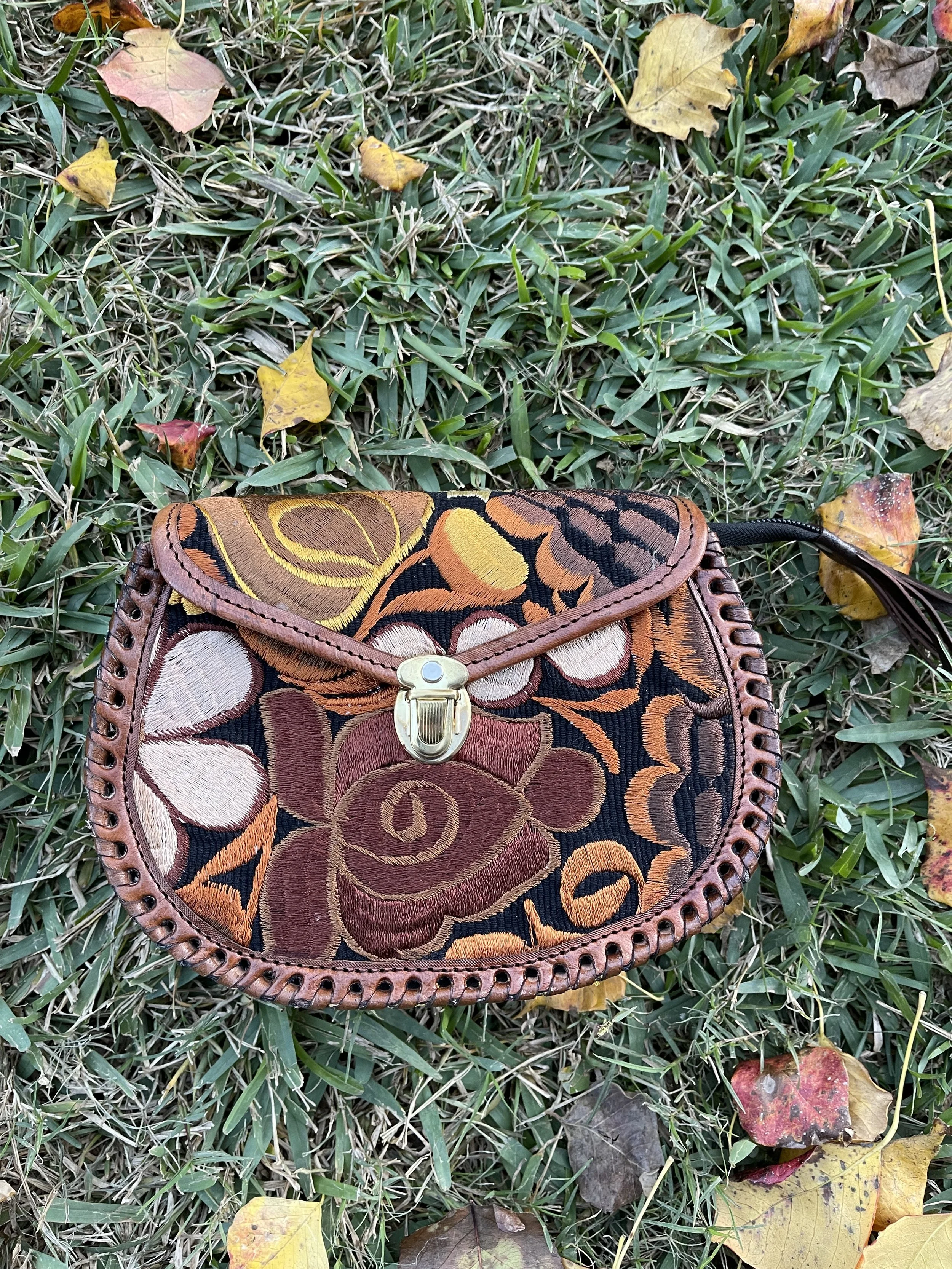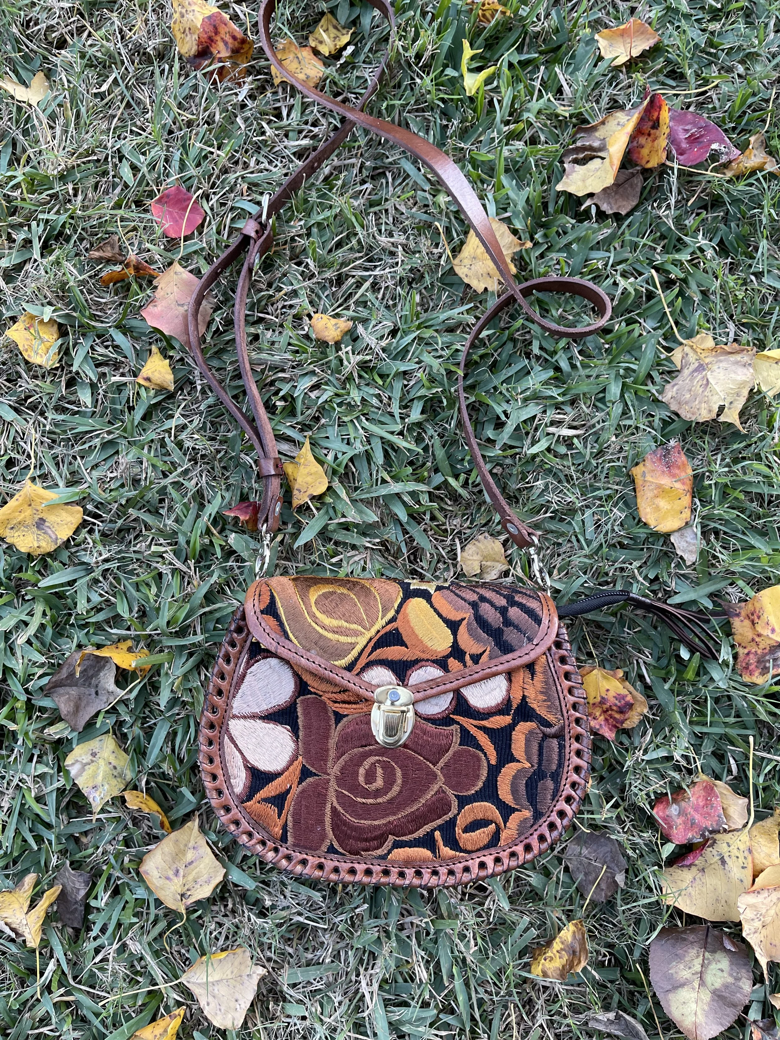 Display of colorful handbags, jewelry, clothing, hats, and accessories in a boutique store. Items include embroidered bags, necklaces, earrings, scarves, hats, and a cactus plant, arranged on black and wooden shelves and tables.