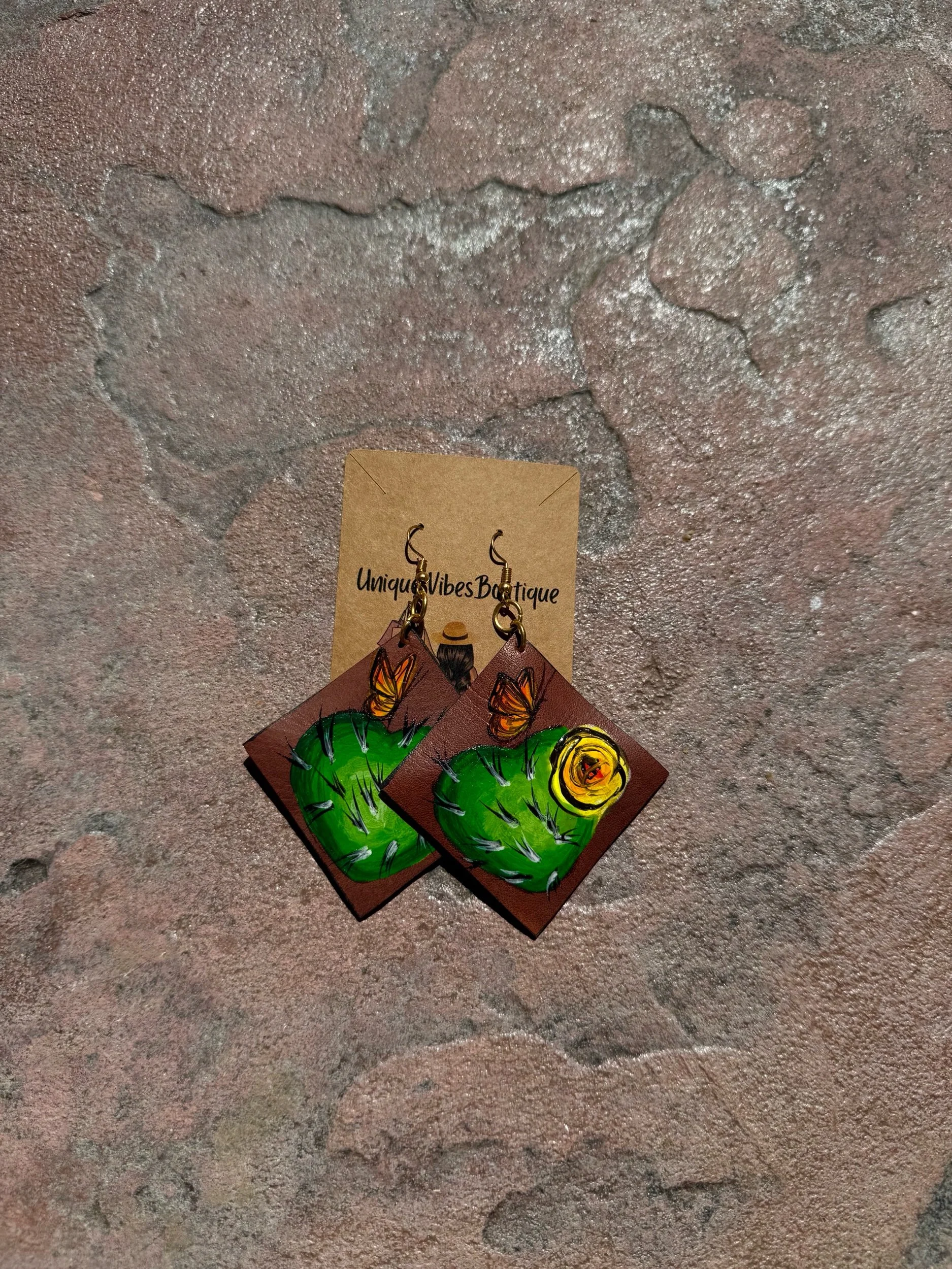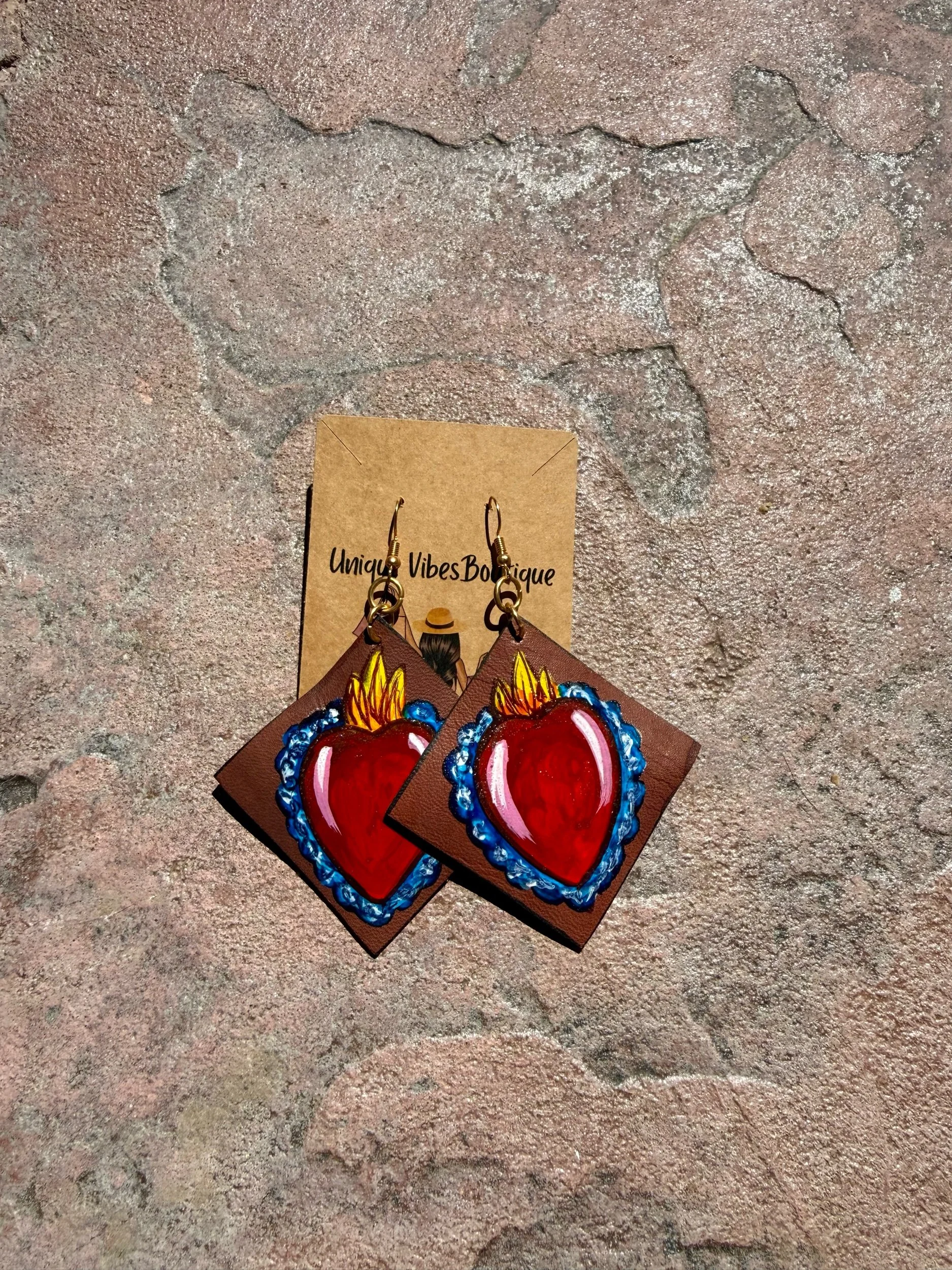 Unique, leather, handpainted earrings design to represent a piece of Mexico and its beauty. Handmade in Mexico.